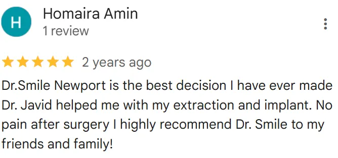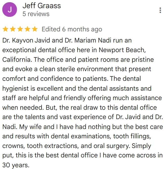 Our highly skilled and experienced dental surgeon. Dr. Kayvon Javid, have many years of experience, placing hundreds of dental implants during this time, and enjoying an above-average implant success rate of over 98%.